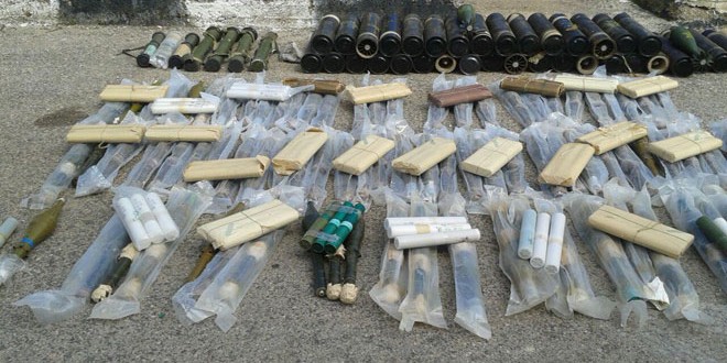 وأحبطت الجهات المختصة بالسويداء في 20 الشهر الماضي تهريب كمية كبيرة من ذخائر الأسلحة الثقيلة والمتوسطة كانت قادمة من ريف درعا الشرقي باتجاه التنظيمات الإرهابية التكفيرية في البادية السورية.