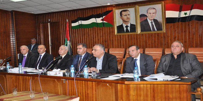 محافظ حمص طلال البرازي أكد أنه سيتم “تقديم الدعم لجميع المشاريع الاستثمارية” التي تطرح من قبل الاتحاد بما فيها مشروع استثمار قطعة الأرض المخصصة للاتحاد في الوعر أو إقامة أفران أو مستودع استهلاكي عمالي مستعرضا حجم الاضرار المباشرة في كل الجهات العامة بحمص نتيجة الإرهاب حيث تم حتى الآن صرف 6 مليارات ليرة للاصلاحات وإعادة تفعيل القطاعات الخدمية.