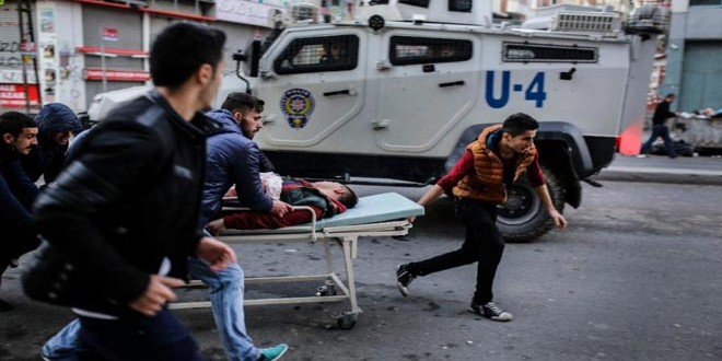 أصيب متظاهران تركيان على الأقل مساء اليوم جراء قمع شرطة نظام رجب أردوغان لاحتجاجات شعبية حاشدة في الشطر الأوروبي من مدينة اسطنبول ضد الاعتداءات التي تنفذها قوات الجيش التركي بحق مواطنيها في مناطق جنوب شرق تركيا والتي اسفرت عن سقوط عشرات الضحايا في صفوف المدنيين.