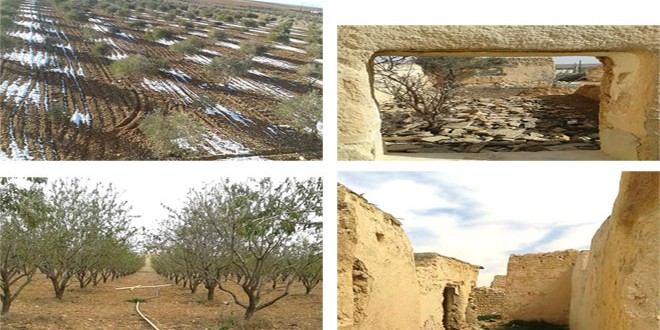 ويذكر مختار القرية أن بيوت القرية معظمها من الطراز الحديث ما عدا بعض البيوت الحجرية القديمة المصنوعة من حجر البازلت.