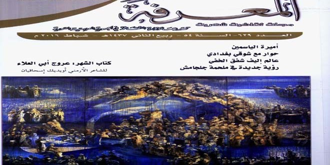 تضمنت مجلة المعرفة الصادرة عن وزارة الثقافة في عددها للشهر الجاري مقالات ودراسات وبحوثا شملت مواضيع تاريخية وأدبية وعلمية إضافة إلى قصائد شعرية وقصص قصيرة ونصوص أدبية مترجمة وقراءات نقدية ونافذة على بعض الإصدارات الجديدة .
