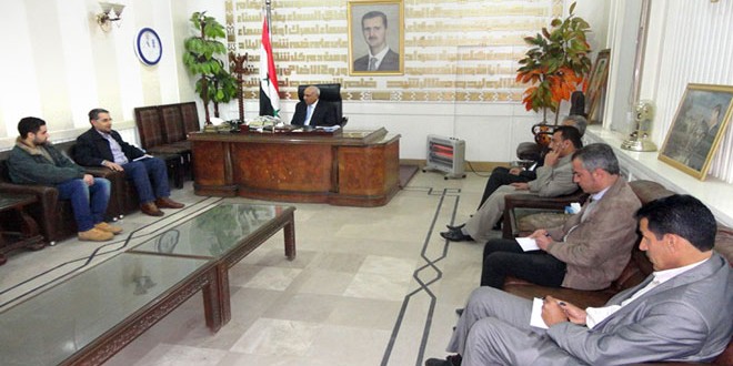 بحث محافظ الحسكة محمد زعال العلي اليوم مع الممثل المساعد المقيم لصندوق الأمم المتحدة للسكان الدكتور عمر بلان سبل تعزيز التعاون بين الجانبين بما ينعكس إيجابا على الواقع الخدمي بالمحافظة ويخفف من تداعيات الأوضاع الراهنة على الأهالي.