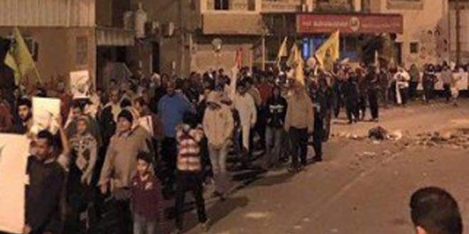 ونظمت المظاهرة لإحياء الذكرى الخامسة للاحتجاجات الشعبية المستمرة التي انطلقت في 14 شباط عام 2011 والتي تطالب بالإصلاحات والعدالة الاجتماعية ورفع التمييز.