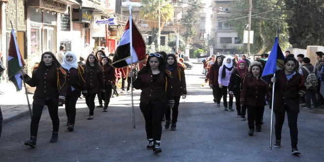 وأكد المشاركون في الفعالية أن السوريين متمسكون بأرضهم وثوابتهم الوطنية وسيواصلون الدفاع عن وطنهم إلى جانب الجيش بالتوازي مع إعادة بنائه وإعمار كل ما دمره الإرهابيون.