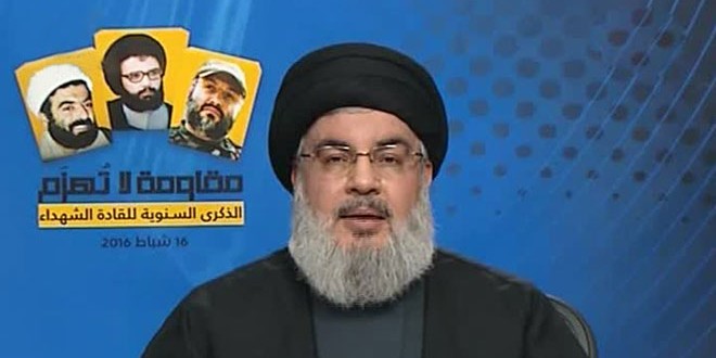 وأشار السيد نصر الله الى أن الهزائم المتلاحقة للتنظيمات الإرهابية في سورية دفعت السعودية وتركيا إلى التهديد بتدخل بري في سورية بحجة محاربة تنظيم “داعش” الإرهابي تحت قيادة الولايات المتحدة الأمريكية حتى يكونوا حاضرين بقوة على طاولة المفاوضات أو ليكونوا قادرين على مواصلة الحرب والدمار في سورية بعد أن نفد رهانهم على الارهابيين.