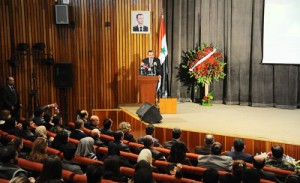 وفي كلمة له خلال حفل التكريم أكد الحلقي أهمية الشهادة كقيمة مثلى في حياة الوطن والمواطن مبينا أن “دماء الشهداء هي القوة التي ساندت حقنا في الدفاع عن سورية لترتفع رايات النصر فوق أرضها”.