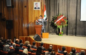 ولفت الحلقي إلى ضرورة مشاركة الجميع بإعادة إعمار سورية موجهاً الشكر والتقدير لأصدقاء سورية في روسيا الاتحادية والجمهورية الإسلامية الإيرانية والمقاومة الوطنية اللبنانية وجميع الدول التي تقف إلى جانب