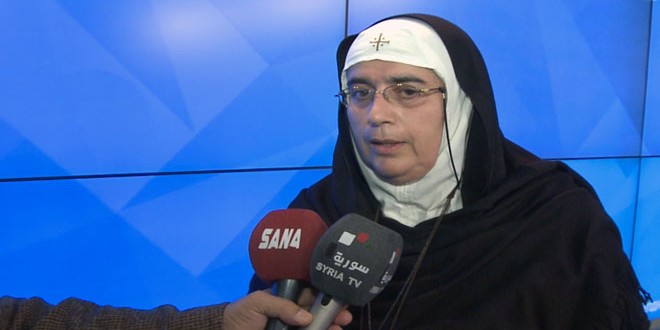 وعبرت الأم أغنيس عن فخرها بهذه الجائزة وأهدتها لسورية وقالت عملي ظهر من خلال محبتي للشعب السوري ودفاعي عن الحقيقة في سورية مضيفة إن لدى المجتمع الدولي مخططا بدعم التنظيمات الارهابية المتطرفة المناهضة للتعددية الدينية الموجودة في سورية.