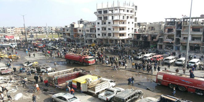 وكانت ثلاثة تفجيرات إرهابية متتالية استهدفت شارع المدارس في بلدة السيدة زينب أدت إلى ارتقاء 83 شهيدا وإصابة العشرات أغلبهم من الأطفال والنساء بينما ارتقى 48 شهيدا وأصيب العشرات جراء تفجير إرهابي مزدوج بسيارتين مفخختين قرب مدخل حي الأرمن في شارع الستين في مدينة حمص.