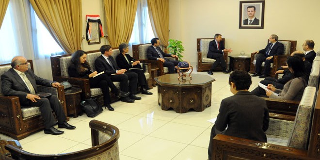 بحث الدكتور فيصل المقداد نائب وزير الخارجية والمغتربين مع بيتر ماورير رئيس اللجنة الدولية للصليب الأحمر والوفد المرافق له خلال لقائهما صباح اليوم العلاقات المتطورة بين الجمهورية العربية السورية واللجنة الدولية