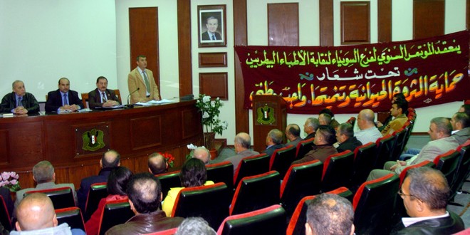 طالب أعضاء مؤتمر فرع نقابة الأطباء البيطريين بالسويداء اليوم بإحداث مخبر بيطري ومشروعات استثمارية لفرع النقابة وإنصافهم بطبيعة العمل ضمن الدوائر العاملين فيها وإعادة النظر بتعويض نهاية الخدمة وإيجاد فرص عمل للأطباء البيطريين غير العاملين بالدولة.
