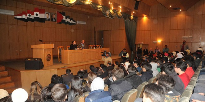 حضر الندوة رئيس اتحاد شبيبة الثورة معن عبود وعدد من أعضاء قيادة الاتحاد وحشد كبير من الشباب والطلاب.