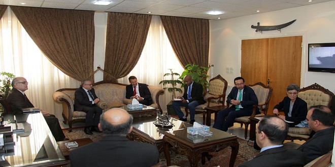 بحث وزير الموارد المائية الدكتور كمال الشيخة مع رئيس اللجنة الدولية للصليب الأحمر بيتر ماورير سبل توسيع آفاق التعاون لتأمين أكبر دعم ممكن لقطاع مياه الشرب في سورية الذي تضرر كثيراً جراء الاعتداءات التي مارستها التنظيمات الارهابية المسلحة على مصادر المياه ومنشآتها من خطوط ومحطات ضخ وبنى تحتية.