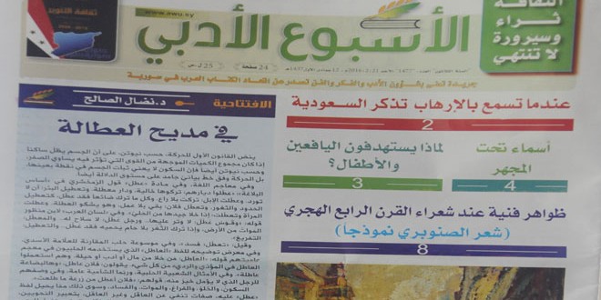 احتوى العدد الجديد من جريدة الأسبوع الأدبي قراءات سياسية لتداعيات الحرب والمؤامرة على سورية ونصوصا أدبية متنوعة وقراءات نقدية أدبية إضافة إلى أخبار الأدب والثقافة والإصدارات والأدباء.