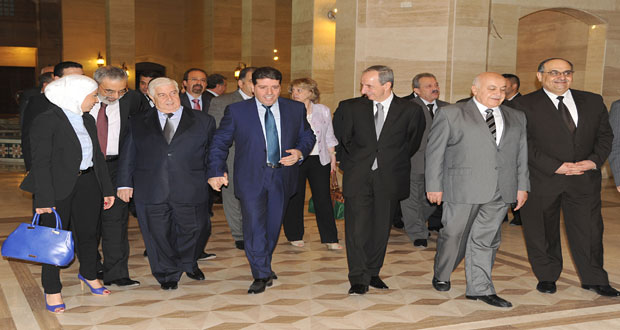 وكان نائب رئيس مجلس الوزراء وزير الخارجية والمغتربين في حكومة تسيير الأعمال وليد المعلم قدم عرضا سياسيا شاملا أشار فيه إلى الأحداث الاخيرة التي تشهدها المنطقة العربية مؤكدا أن الانتصارات التي يحققها جيشنا الباسل تعزز صمود محور المقاومة والممانعة ضد المخططات المريبة المعدة للمنطقة.