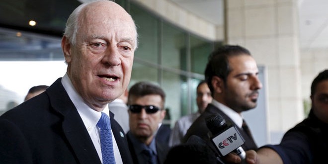 يشار إلى أن دي ميستورا سيقدم غدا إحاطة إلى مجلس الأمن الدولي حول جهوده الرامية إلى استئناف الحوار السوري فيما يناقش أعضاء مجلس الأمن مسودة لتبني التفاهم الروسي الأمريكي المتعلق بوقف الأعمال القتالية على شكل قرار في مجلس الأمن.