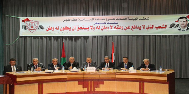 ونوه أمين فرع طرطوس لحزب البعث العربي الاشتراكي غسان أسعد بدور المحامين في الدفاع عن حقوق المواطنين وبالتضحيات التي يقدمها الشهداء في سبيل الوطن.