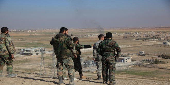 وأعادت وحدات من الجيش والقوات المسلحة الأمن والاستقرار إلى عدد من القرى في ريف حلب الجنوبي الشرقي بعد تكبيد إرهابيي تنظيم “داعش” المدرج على لائحة الإرهاب الدولية خسائر في الأفراد والعتاد.