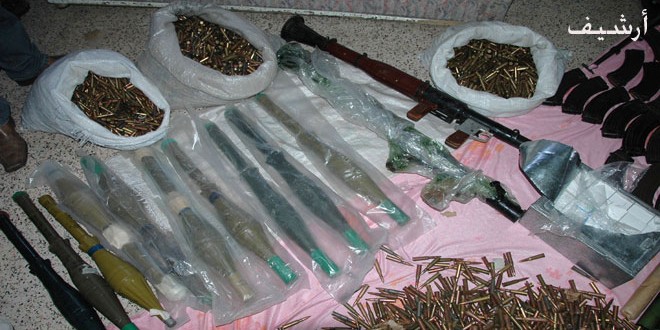 وذكر مصدر في الضابطة في تصريح لمراسل سانا أنه بعد الرصد والمتابعة أوقفت إحدى الدوريات سيارة سياحية خاصة وعثر بداخلها على 3 آلاف طلقة رشاش و7 قنابل يدوية كانت موضوعة في مخابئ سرية.