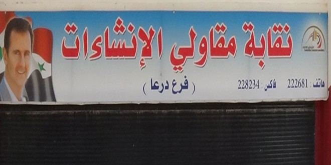 طالب المشاركون بالمؤتمر السنوي لفرع نقابة مقاولي الإنشاءات بدرعا الجهات التي يتم التعاقد معها بخصوص تنفيذ المشاريع الخدمية لحظ فروق الأسعار بالنسبة للعقود القديمة والإسراع بصرف كشوف المشاريع المنفذة وإعادة رسوم التأمين وطابع العقد للمقاولين.