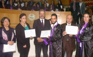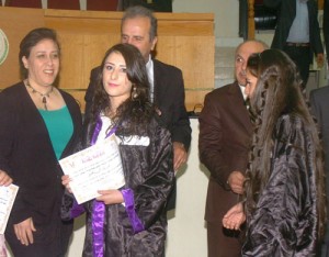 وبينت الخريجة الأولى هند عسقول في كلمة لها باسم زملائها أن تخريجهم يعني انطلاقتهم للحياة العملية لتسخير ما تعلموه في خدمة الإنسان مؤكدة أن هذه المهنة الإنسانية التي تشرفوا بحمل لوائها اقترنت بتحصيل علمي مميز حصلوا عليه بجهود أساتذتهم.