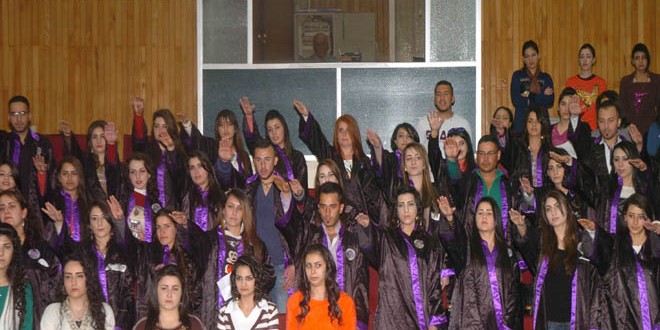 أقام فرع الاتحاد الوطني لطلبة سورية بالسويداء بالتعاون مع مدرسة الشهيد ربيع كمال زين الدين للتمريض والقبالة اليوم حفل تخريج الدفعة الخمسين من طلاب المدرسة مع تكريم الأوائل في السنتين الأولى والثانية