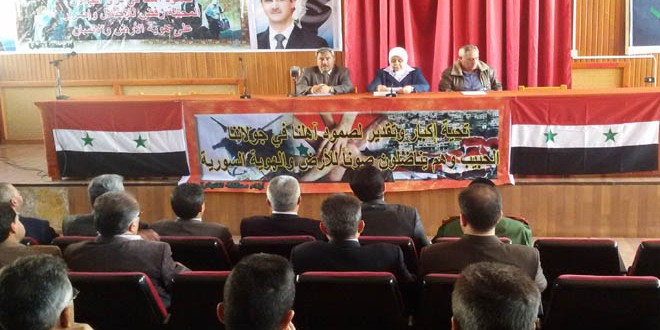 حضر الندوة حشد كبير من الفعاليات الرسمية والشعبية وطلبة جامعة دمشق فرع القنيطرة.