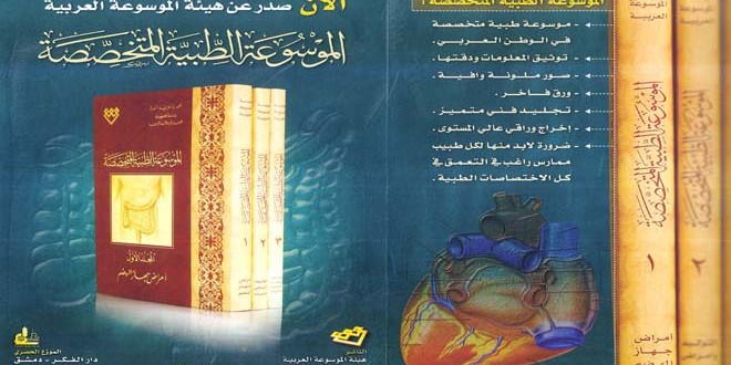 أصدرت هيئة الموسوعة العربية بدمشق المجلدين الثالث عشر والرابع عشر من الموسوعة الطبية المتخصصة وهي المؤلف الأول من نوعه باللغة العربية وضعه عدد كبير من الأطباء السوريين الذين أخذوا على عاتقهم مهمة الإسهام في وضع هذه الموسوعة بين أيدي زملائهم الممارسين للمهنة عبر ايصال أحدث المعلومات بلغة سليمة ميسرة لتكون ضرورة لابد منها لكل طبيب ممارس راغب بالتعمق في كل الاختصاصات الطبية.