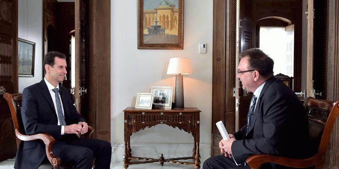 أولاً وقبل كل شيء، فيما يتعلق بما تسميه هزيمة، في الواقع، فإن كل حربٍ تتكوّن من معارك مختلفة، حيث تخسر معارك وتربح معارك. إذاً، نحن كنا نخسر في مكان ما ونكسب في مكان آخر. لم يكن الأمر يتعلّق بالهزيمة أو النصر. إنها ليست حرباً سهلة، ونحن نحارب عشرات البلدان التي تدعم أولئك المرتزقة والإرهابيين العملاء. بالنسبة لحلفائنا وأصدقائنا الذين انضموا إلى هذه الحرب بطرق مختلفة، بعضهم بشكل مباشر، وبعضهم بشكل غير مباشر، فإن لهم رؤية أخرى. هم لم يأتوا إلى سورية لمساعدة الرئيس السوري أو الحكومة السورية، أو شيء من هذا القبيل. في الواقع، إنهم أتوا لأنهم يعرفون أن الإرهاب، إذا ساد في منطقة ما فإنه لن يعرف حدوداً.. إنه لا يعترف بالحدود، والدليل هو “داعش”.. من ليبيا إلى العراق إلى سورية، ليست هناك حدود. إذا سيطر الإرهاب في هذه المنطقة، فإنه سينتقل إلى مكان آخر، وليس إلى البلدان المجاورة وحسب. إذاً، لديهم رؤية واضحة حيال هذا. هم لم يدافعوا عنّا وحسب، بل إنهم كانوا يدافعون عن أنفسهم. لم يأتوا ليطلبوا مني شيئاً. كل أصدقائنا يحترمون سيادتنا ولا يطلبون منا شيئاً بالمقابل.