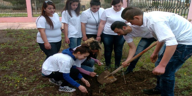 أطلق فرع الاتحاد الوطني لطلبة سورية بالسويداء اليوم من معهد الفنون التشكيلية والتطبيقية حملة تشجير لغرس مئات الأشجار الحراجية والمثمرة في مختلف معاهد وكليات المحافظة على مدار أسبوعين.