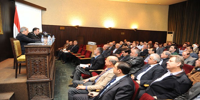 وعرض مدير اقتصاد دمشق حسام شالاتي آلية وخطوات منح إجازات الاستيراد في وزارة الاقتصاد والأوراق والوثائق التي تتطلبها والوقت الذي تستغرقه الموافقة على الإجازة والقنوات التي تمر عبرها والأسس التي تحكمها مثل ترشيد الاستيراد والتقييد الجزئي لبعض البضائع .