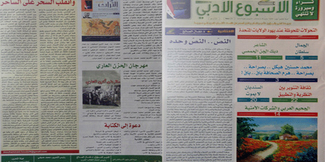 تضمن العدد الجديد من جريدة الأسبوع الأدبي مقالات فكرية ودراسات أدبية وقراءات نقدية وقصائد شعرية وقصصا قصيرة وأخبار الأدب والثقافة إضافة إلى آخر الإصدارات والنشاطات الأدبية في اتحاد الكتاب العرب والمراكز الثقافية.