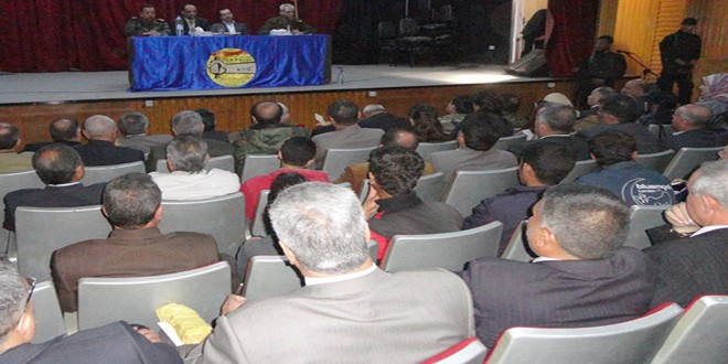 ودعا محافظ الحسكة المهندس “حمد زعال العلي” وأمين فرع حزب البعث العربي الاشتراكي فيها “خلف المهشم” أبناء المحافظة ممن تشملهم جرائم الفرار الداخلي والخارجي إلى تسوية أوضاعهم والمشاركة في الدفاع عن تراب الوطن واستكمال مسيرة الإنتصار التي يحققها أبطال الجيش العربي السوري على التنظيمات الإرهابية حتى إعادة الأمن والإستقرار إلى جميع ربوع الوطن.