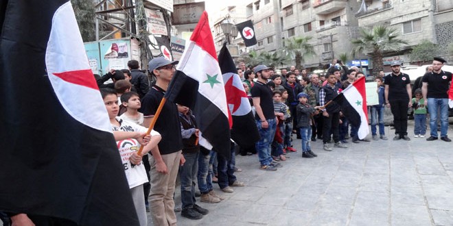 نظمت منفذية القنيطرة في الحزب السوري القومي الاجتماعي في سورية اليوم وقفة تضامنية مع حزب الله رفضا لقراري مجلسي التعاون الخليجي ووزراء الداخلية العرب باعتبار الحزب “منظمة إرهابية “وذلك بمدينة جرمانا في ريف دمشق.