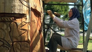 يعكف فريق من النحاتين السوريين حالياً على إنجاز عمل نحتي فني على شجرتي كينا يابستين بطول لا يقل عن عشرين مترا للواحدة في حديقة المنشية بدمشق حيث انطلق العمل من قبل فريق جدارية إيقاع الحياة في العشرين من الشهر الماضي تحت إشراف التشكيلي موفق مخول الذي تنظمه وزارة التربية ومحافظة دمشق بالتعاون مع اتحاد التشكيليين السوريين.