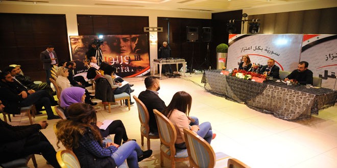 تحدث المخرج باسل الخطيب في مؤتمر صحفي عقده بمدينة الشباب في دمشق اليوم برعاية شركة سيريتل عن تجربته في إخراج فيلمه الجديد “سوريون” الذي يعرض في سينما سيتي حاليا وذلك بمشاركة الفنانة ميسون أبو أسعد والفنان علاء قاسم وبحضور إعلامي كثيف.