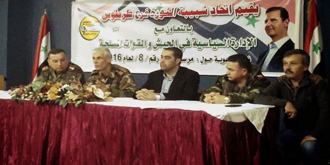 نظمت الإدارة السياسية بالتعاون مع فرع منظمة اتحاد شبيبة الثورة بطرطوس اليوم ندوة تعريفية في مقر المعهد الفندقي بمدينة طرطوس حول مزايا المرسوم التشريعي رقم 8 لعام 2016 القاضي بمنح عفو عام عن جرائم الفرار الداخلي والخارجي المنصوص عليها في قانون خدمة العلم والمرتكبة قبل 17 2-2016.