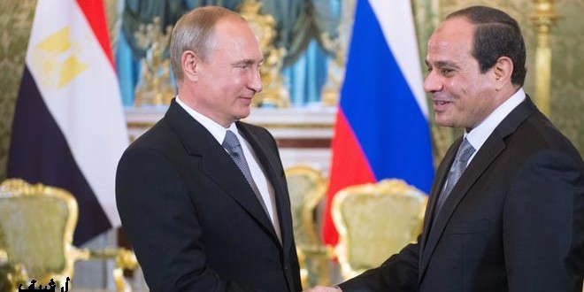 أكد الرئيسان الروسي فلاديمير بوتين والمصري عبد الفتاح السيسي أهمية مواصلة الحرب على الإرهاب في سورية وليبيا واليمن وذكر الكرملين أن بوتين أطلع السيسي خلال اتصال هاتفي اليوم على “الجهود المبذولة في سياق تنفيذ بنود البيان المشترك الصادر عن روسيا الاتحادية والولايات المتحدة اللتين تترأسان المجموعة الدولية لدعم سورية حول وقف الأعمال القتالية وشدد على أن تنفيذ شروط الاتفاق يعتبر عاملا أساسيا لتهدئة الأوضاع داخل سورية وتحسين الوضع الإنساني فيها”.