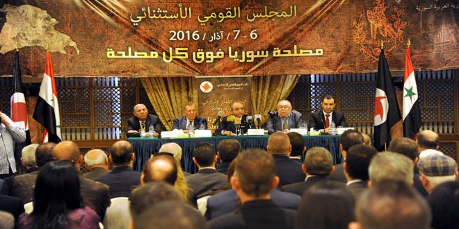 وفي مؤتمر صحفي عقد اليوم في فندق الشام عقب نهاية أعمال المجلس القومي الاستثنائي للحزب دعا سويد جميع القوى الوطنية الفاعلة على الأرض إلى رص الصفوف وتكثيف العمل من اجل بلورة رؤية جامعة تسهم في رسم مستقبل سورية بما فيها”المعارضة الوطنية” مشيراً إلى ضرورة ألا تكون هذه المعارضة “مرتهنة لإرادات الخارج ودول العدوان على سورية كما هو حال هيئات وهياكل تسمى معارضات جعلت من نفسها أدوات في يد الخارج”.