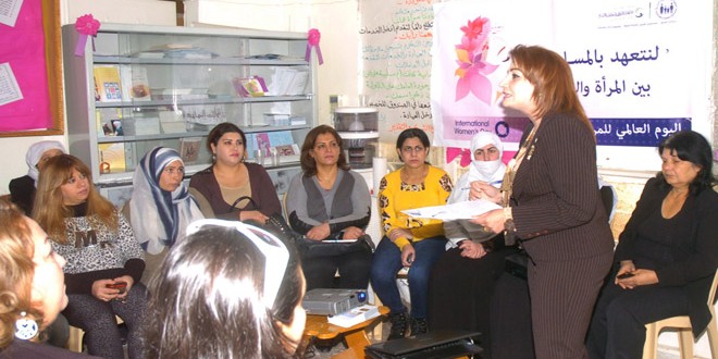 نظم فرع جمعية تنظيم الأسرة السورية بالسويداء بالتعاون مع صندوق الأمم المتحدة للسكان اليوم فعالية بمناسبة يوم المرأة العالمي تحت عنوان “لنتعهد بالمساواة بين المرأة والرجل” وذلك بمشاركة مجموعة من النساء المستفيدات من خدمات الجمعية.