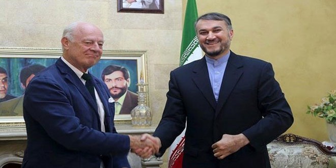 من جانبه أشار دي ميستورا إلى الدور البناء للجمهورية الإسلامية الإيرانية على صعيد حل الأزمة في سورية سياسياً مشيرا إلى المساعي التي يبذلها لعقد جولة جديدة من الحوار السوري السوري قريباً في جنيف.