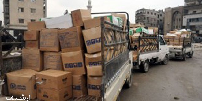 بدعم من الحكومة السورية وبإشراف اللجنة العليا للإغاثة واصلت الهيئة العامة للاجئين الفلسطينيين العرب ووكالة الأمم المتحدة لإغاثة وتشغيل اللاجئين الفلسطينيين الأونروا توزيع المساعدات على أهالي مخيم اليرموك الذين غادروا المخيم هربا من جرائم التنظيمات الإرهابية وفي مقدمتها تنظيم داعش.