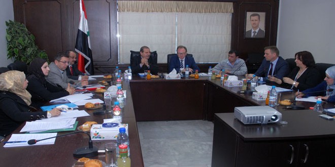 بحث وزير العمل الدكتور خلف العبد الله مع نائب المدير الإقليمي لمكتب منظمة العمل الدولية في بيروت فرانك هاجمان اليوم التحديات الجديدة التي فرضتها ظروف الأزمة في سورية على العمال وسبل تفعيل مجالات التعاون المشتركة بين الوزارة والمنظمة.