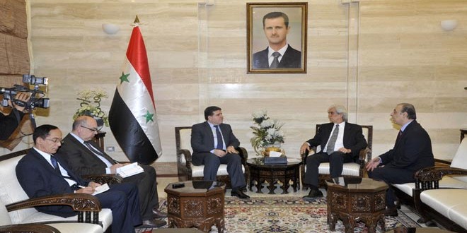 بحث رئيس مجلس الوزراء الدكتور وائل الحلقي مع سفير جمهورية كوبا بدمشق روجيريو مانويل سانتانا رودريغيز فرص التعاون المشترك بين البلدين وآليات تطويرها وتفعيلها وخاصة في مجال الصناعات الطبية والدوائية وتوطين البيولوجية منها إضافة للمجالات الاقتصادية والتجارية.
