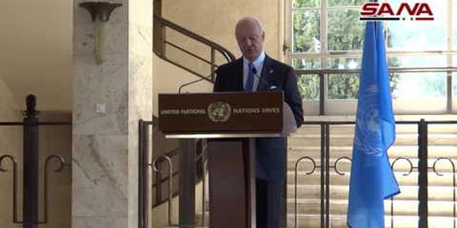 تصريح صحفي لـ دي ميستورا عقب لقائه وفد الجمهورية العربية السورية
