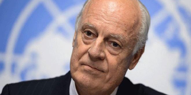 أعرب المبعوث الخاص للأمين العام للأمم المتحدة إلى سورية ستافان دي ميستورا عن أمله بأن يترك قرار روسيا تخفيض عديد قواتها في سورية تأثيرا إيجابيا على الحوار السوري في جنيف.