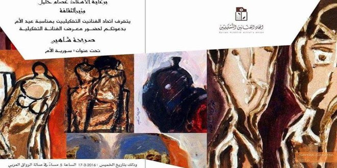 تستضيف صالة لؤي كيالي بالرواق العربي التابعة لاتحاد التشكيليين السوريين عند الخامسة من مساء يوم غد الخميس معرض التشكيلية صريحة شاهين تحت عنوان سورية الأم.