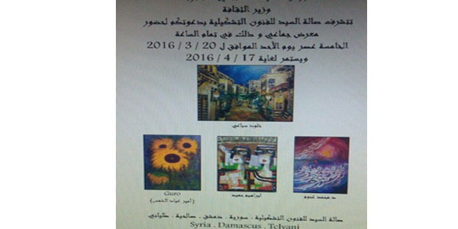 تستضيف صالة السيد للفنون التشكيلية بدمشق معرضا جماعيا يفتتح عند الخامسة من يوم الأحد القادم يضم ثلاثين عملا لأربعة فنانين تشكيليين هم محمد غنوم وخلود السباعي وابراهيم حميد وغورو.