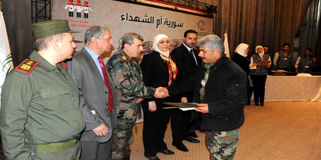 وفي كلمة الجمعية أكد رئيس مجلس إدارة رامي الحلبي أن “أمهات الشهداء وزوجاتهن كن ومازلن يصنعن نصر سورية من خلال شهدائهن الذين رووا أرض الوطن بدمائهم ودافعوا عنه بعقيدتهم وشجاعتهم وإيمانهم بان الشهادة في سبيل سورية واجب مقدس “موجها التحية لأبطال الجيش السوري والقوى الرديفة ومشددا على الاستمرار بمسيرة العطاء والوفاء للوطن وأهله وصون الأمانة لترسيخ قيم التكافل التي تربى عليها السوريون.