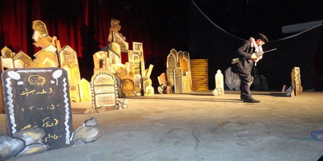 بدوره أوضح باسل حريب بطل المسرحية أن هذا العرض يتركز على أربع لوحات مسرحية أولاها لوحة تجسد قصة شخصية حارس الموتى الذي يعيش ضمن مقبرة ويصوره الناس على أنه شخصية غير إنسانية متلبدة المشاعر متوحشة لكنه يعيش ضمنيا أسى وحزنا على الموتى الذين يجاورهم بينما تعرض اللوحة الثانية قصة طفل يحلم بامتلاك دراجة هوائية ليعيش الحلم طيلة سني حياته دون أن يتحقق حلمه.
